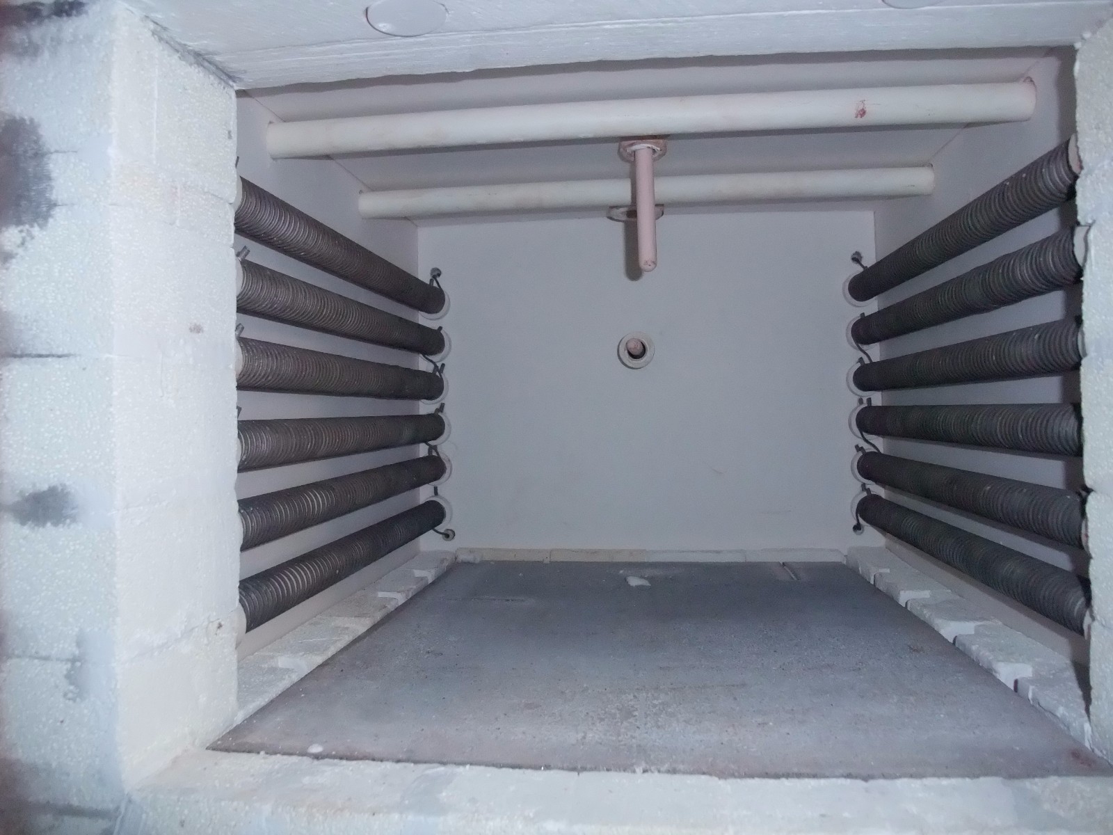 3.4、加熱采用自行繞制首鋼電阻絲穿高溫陶瓷管置于爐膛兩側(cè)和底部,三面加熱,合理均布,爐溫相對均勻,便于維護和更換。